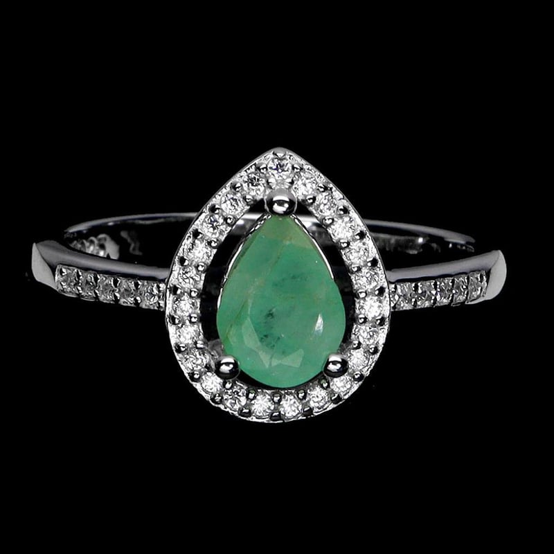 NATURAL EMERALD RING. Natural Emerald Ring. Made In Solid Sterling Silver And Plated In14K White Gold. Features Natural Green Emeralds And Sparkling Czs. Ring Size 7 Condition: Good - Refer Images 0488360+25
