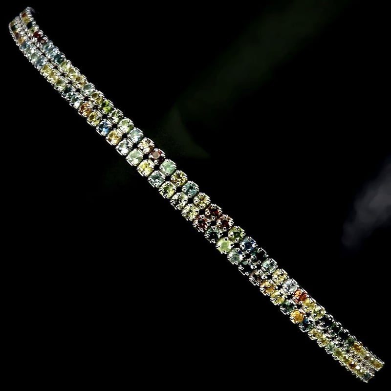NATURAL DIAMOND CUT FANCY SAPPHIRE TENNIS BRACELET.