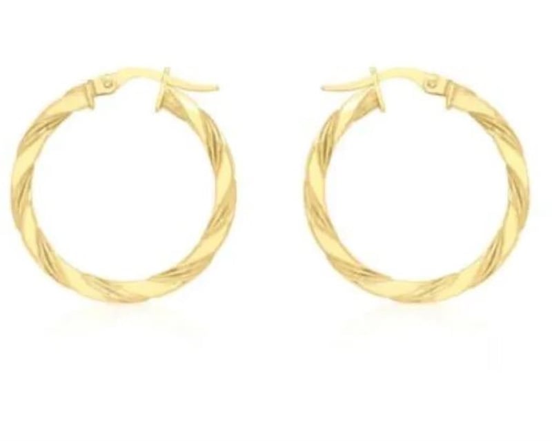9K YELLOW GOLD FLAT TWIST HOOPS 25MM Markings: 9ct Condition: New - Refer Images 0488823+14