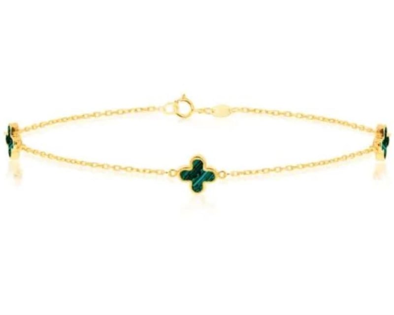 9K YG 3 MALACHITE PETAL BRACELET 19CM