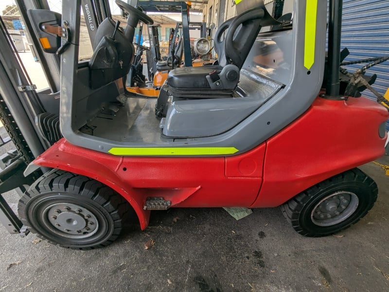 Description/extras: 4.5T LPG Forklift, with Clear View Mast, Side Shift, New Premium Solid Tyres, Double Gas Bottle Bracket