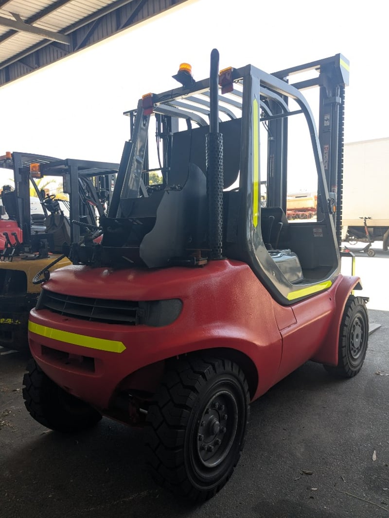 Vendor Advises: Completely repainted and refurbished machine has had all hydraulic rams rebuilt. Complete steer axle rebuild with all bearings and pins replaced. Complete mast rebuild with chains and bearings replaced, Machine has been fully C serviced with hydraulic and filter replaced. Diff replaced, Engine serviced and tappets adjusted. Has had new starter motor , water pump, cooling system hoses and belts replaced. Has been converted to standard forklift gear selection.