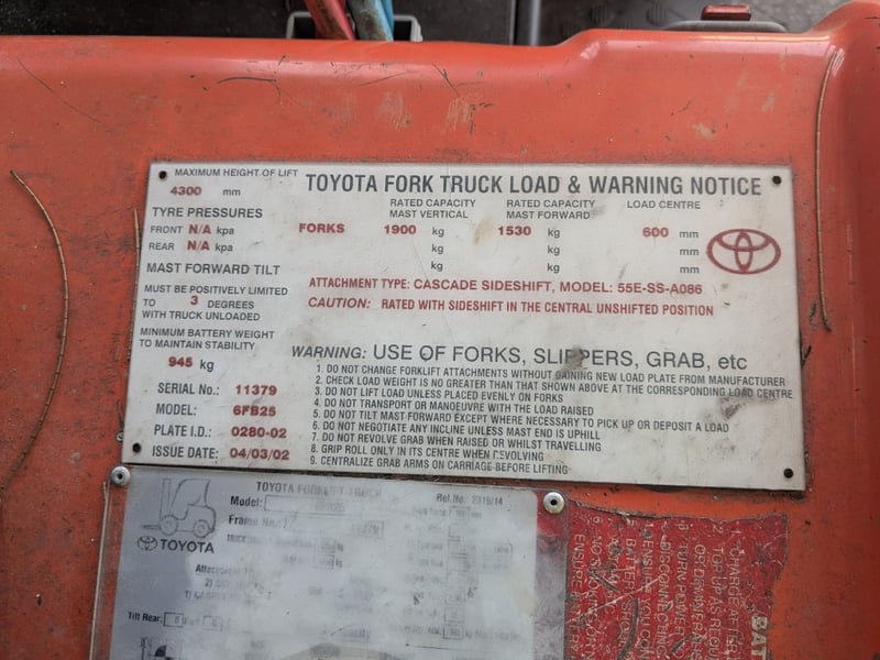 2000 Toyota 6FB25 6FB Forklift **ELECTRIC**
