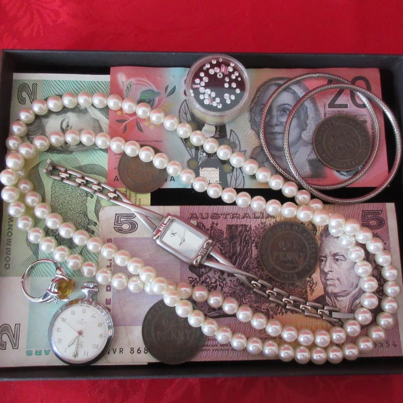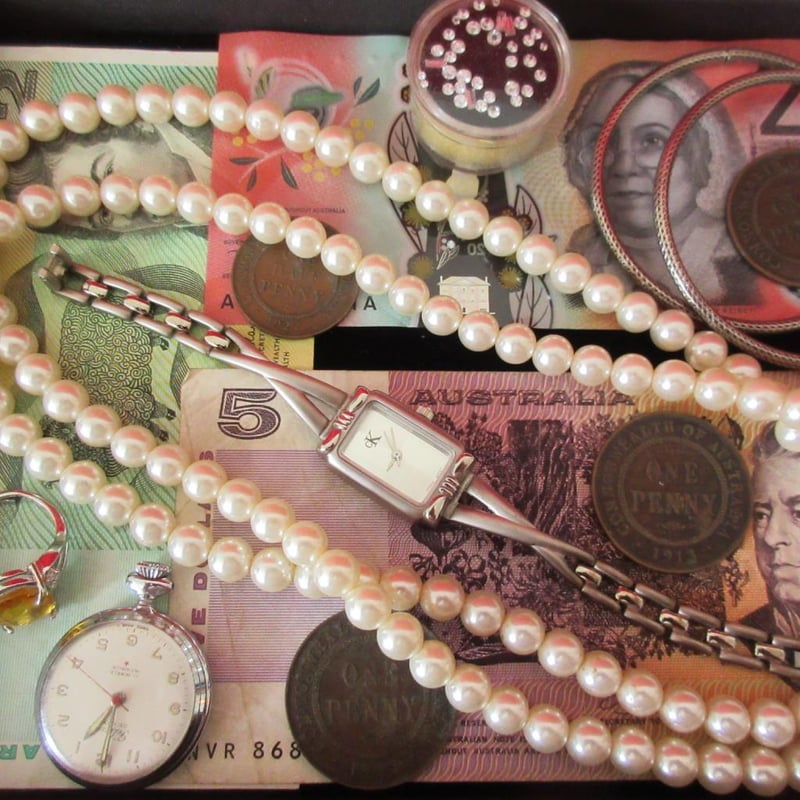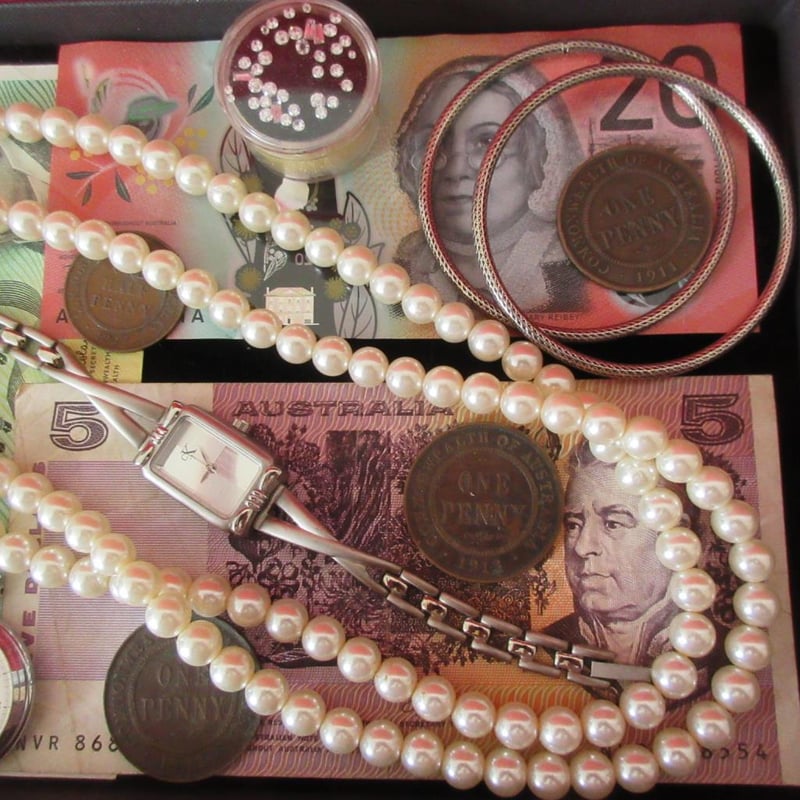 Estate Australian Bank Notes + Australian King George V Coins + Watches + Jewellery Items (Sold as lot)