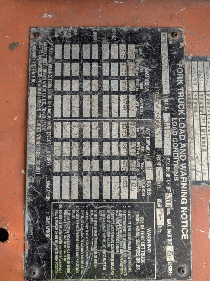 Description/extras: 2.5T LPG Forklift With Container Mast, Side Shift and Solid Tyres