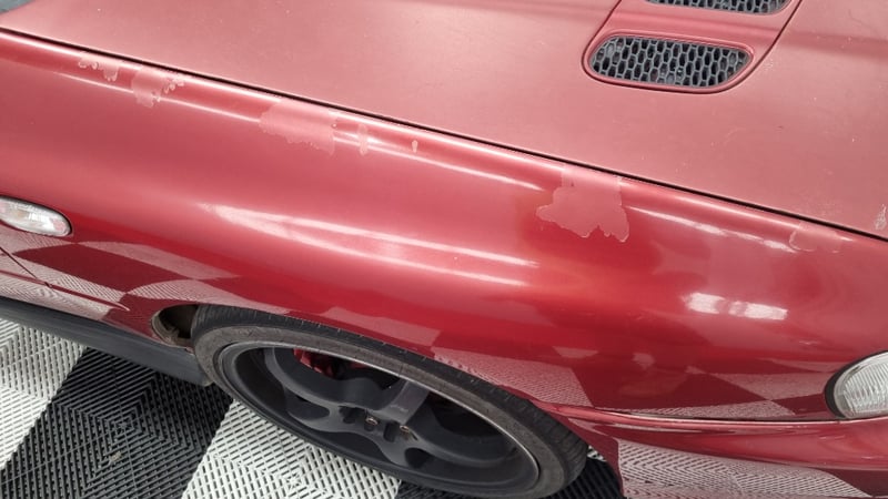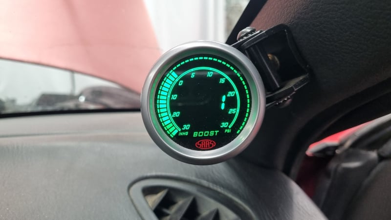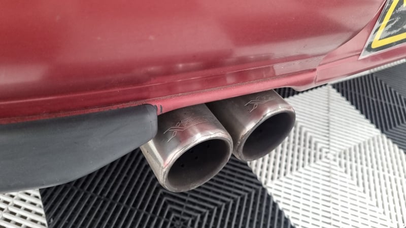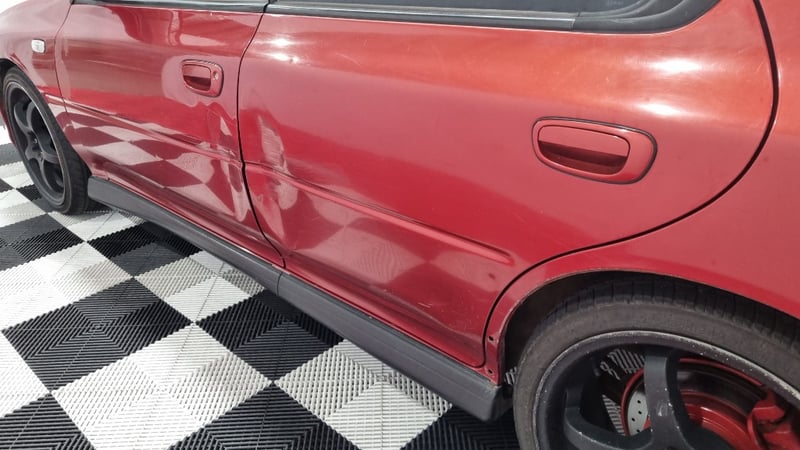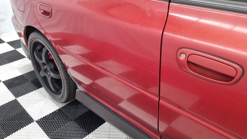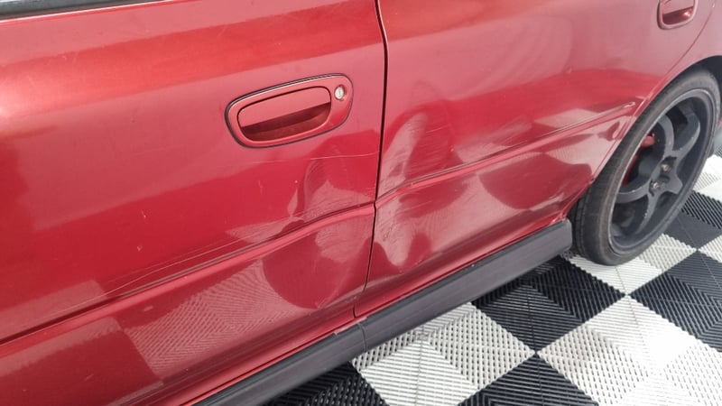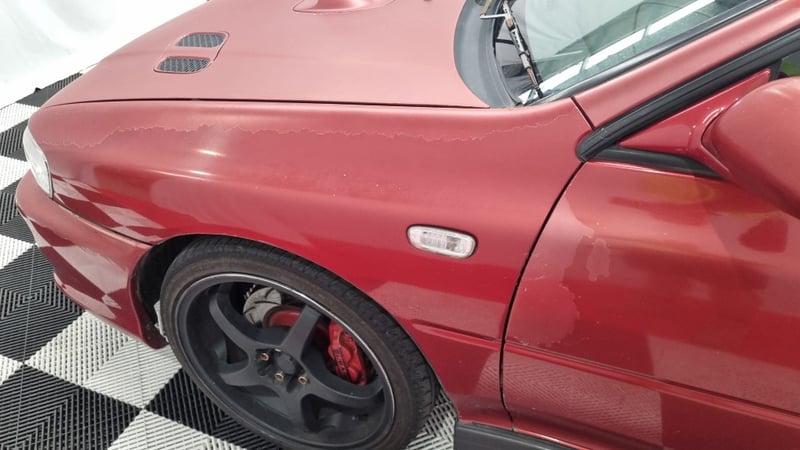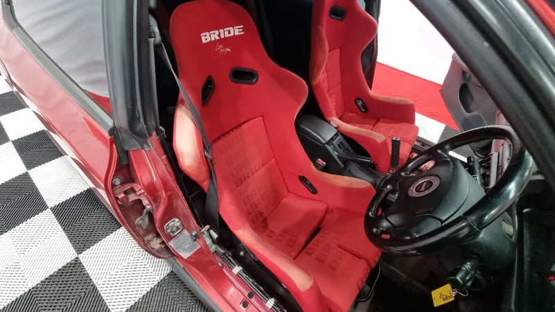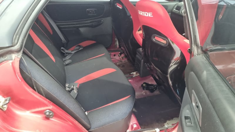 Features: Bride racing bucket seats, turbo boost gauge, oil pressure gauge, voltmeter, water temp gauge, Cobb shifter, Pioneer touchscreen radio, aftermarket exhaust & suspension. Marks, scratches, paint peel, dents on passenger doors, no carpet, rust visible in areas — inspection recommended.
