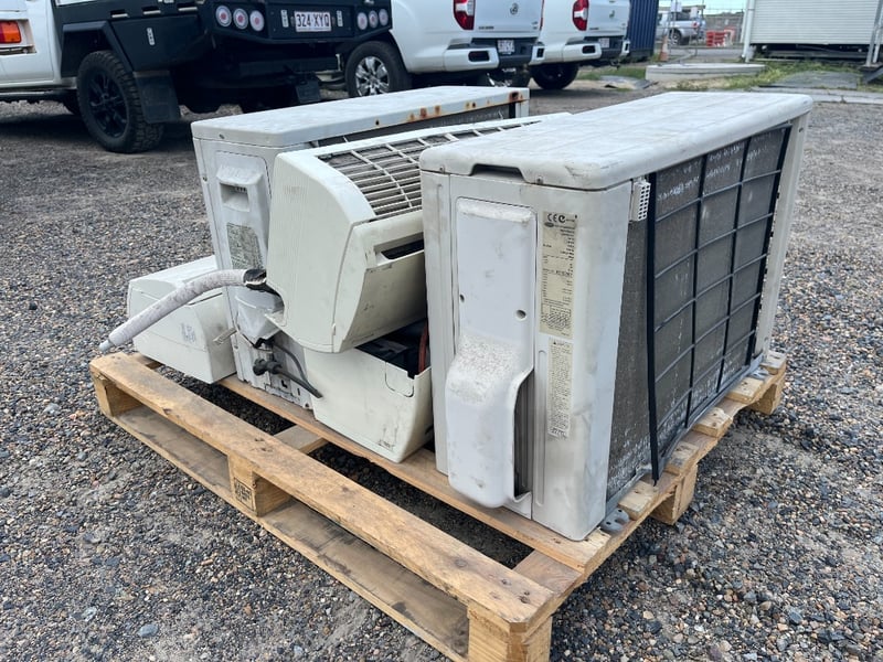 Pallet of Air-Con UnitsMake: DaikenModel: FTXS35KVMASerial #: E033527Make: CarrierModel:38NYV035m-ASerial #: 93100007Description: 1 x Daiken Inverter outdoor unit,1 x Carrier outdoor Unit, 3 x indoor wall unitsSold as is. Location: 3/263 Connors road, Paget, Mackay, 4070Contact: Bradley Taylor - 0473425094 - [email protected]