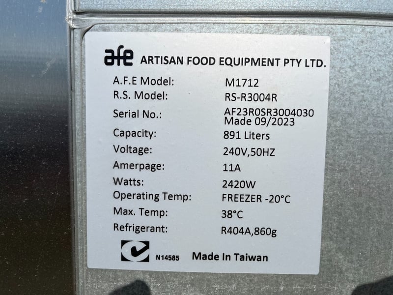 Top Mount – Bakers Buddy Freezer – Stainless SteelMake: ArtisianModel: M1712Year: 09/2023R.S Model: RS-R3004RSerial #: AF23ROSR3004030Capacity: 891LVoltage: 240V,50HZMax Temp: 38 DegreesOperating temp: FREEZER -20 DegreesSold as is,Location: 3/263 Connors road, Paget, Mackay, 4070Contact: Bradley Taylor - 0473425094 - [email protected]
