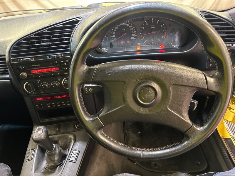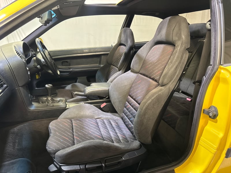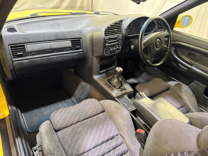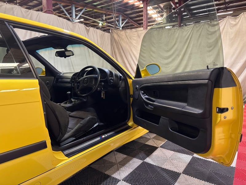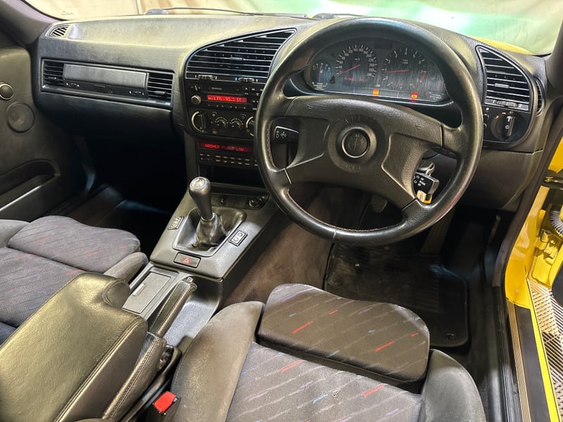 Dakar Yellow was chosen as the hero colour for the E36 M3 following BMW’s Paris–Dakar rally success, and only 35 Australian-delivered 3.0-litre cars were produced in this striking finish. This example is further distinguished by its ultra-rare M Rain cloth and Alcantara Vader seats — one of the most desirable interiors of the era.