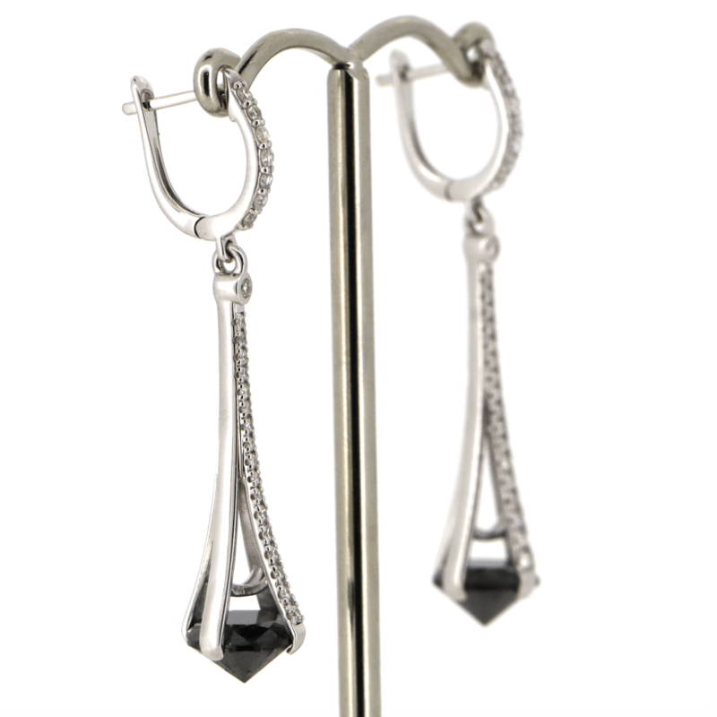 14K WHITE GOLD, BLACK DIAMOND AND DIAMOND, DROP EARRINGS