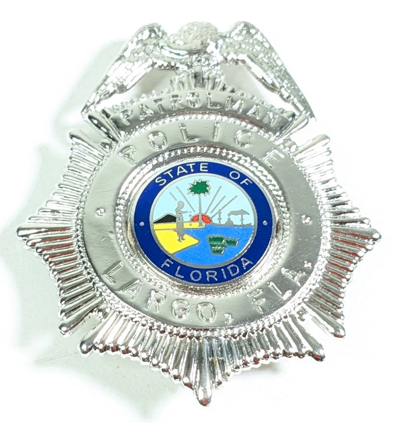 USA LARGO FLORIDA POLICE BADGEItem Size: Height: 5cm, Width: 2.5cm, Depth: 1cm, Weight: 1KgCondition: Good - Refer To ImagesFC1B163013+197