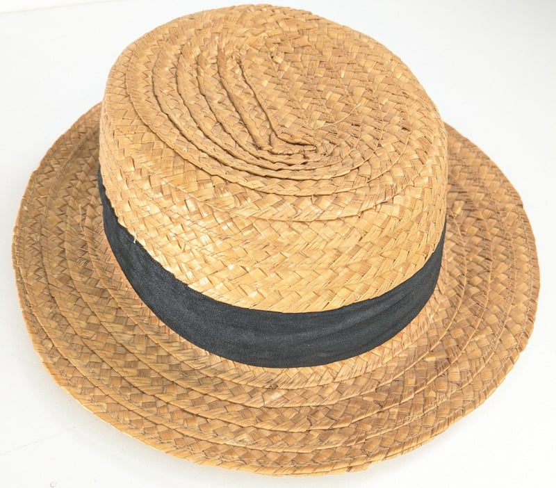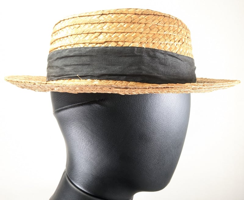 OLD STRAW BOATER, USED BY NAVY PERSONNEL.
