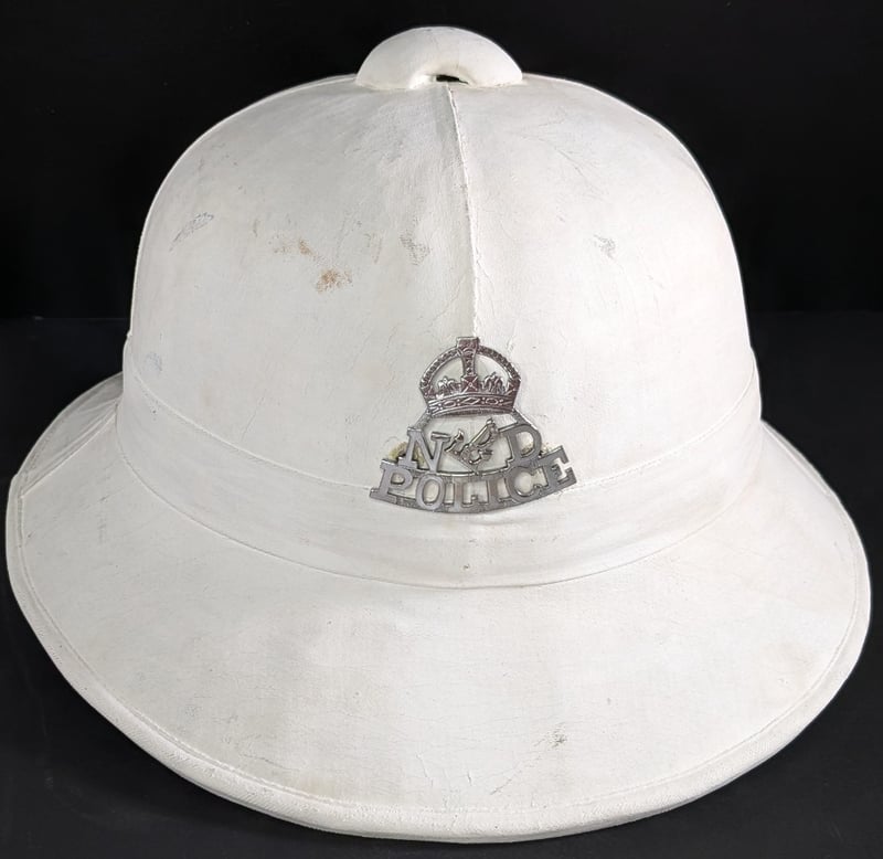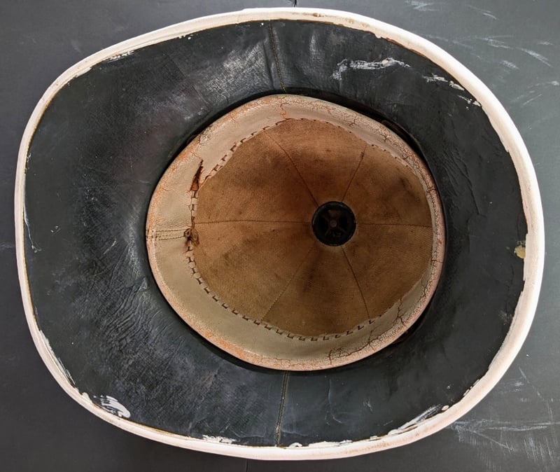 ROYAL AUSTRALIAN NAVAL DOCKYARD POLICE HELMET WW2Item Size: Height: 20cm, Width: 28cm, Depth: 34cm, Weight: 1KgCondition: Good - Refer To ImagesFC1B163013+150
