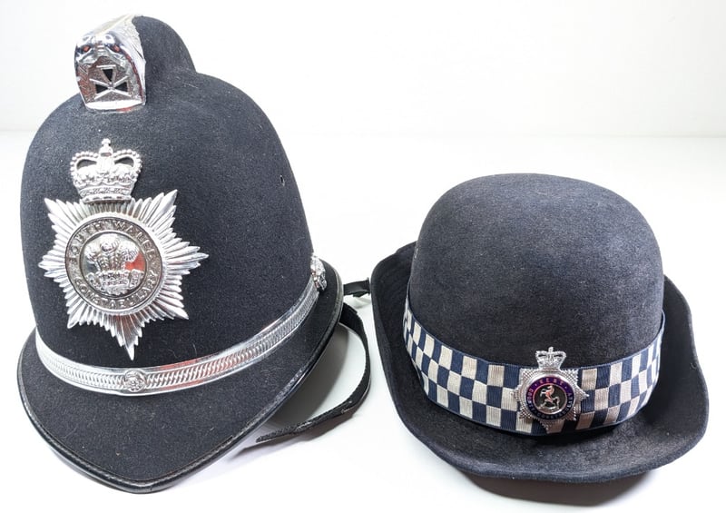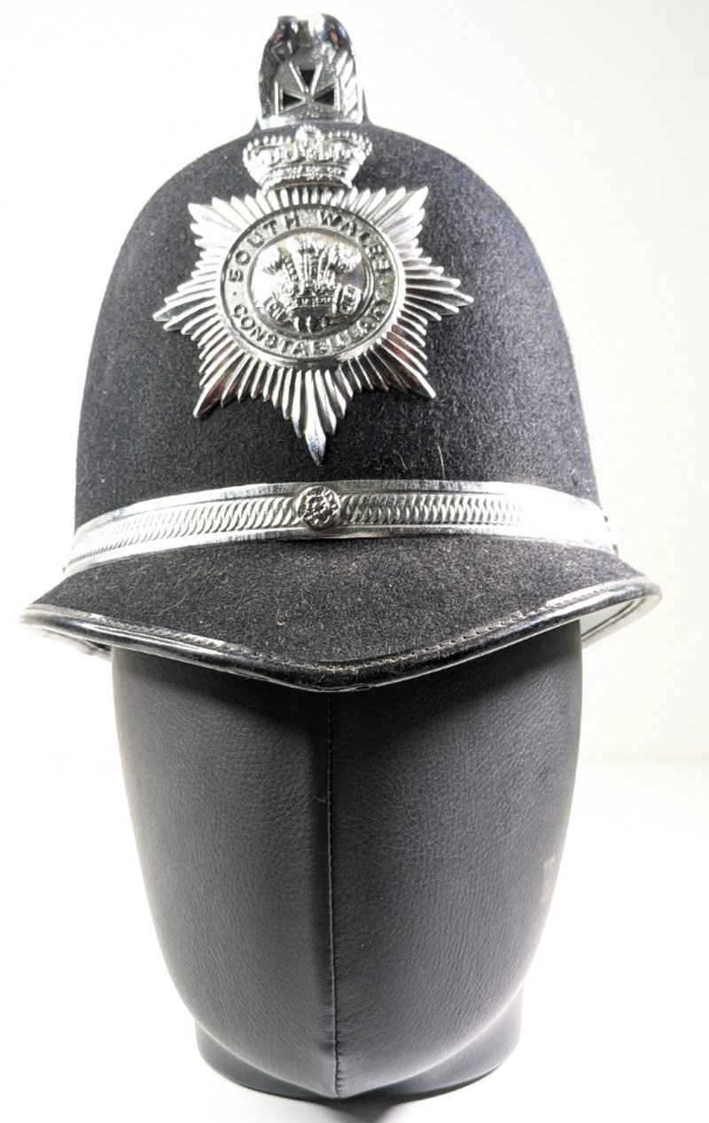 SOUTH WALES BRITISH BOBBY HELMET QE11 BADGE, KENT CONSTABULARY WOMENS CAPItem Size: Height: 24cm, Width: 30cm, Depth: 10cm, Weight: 1KgCondition: Good - Refer To ImagesFC1B163013+172