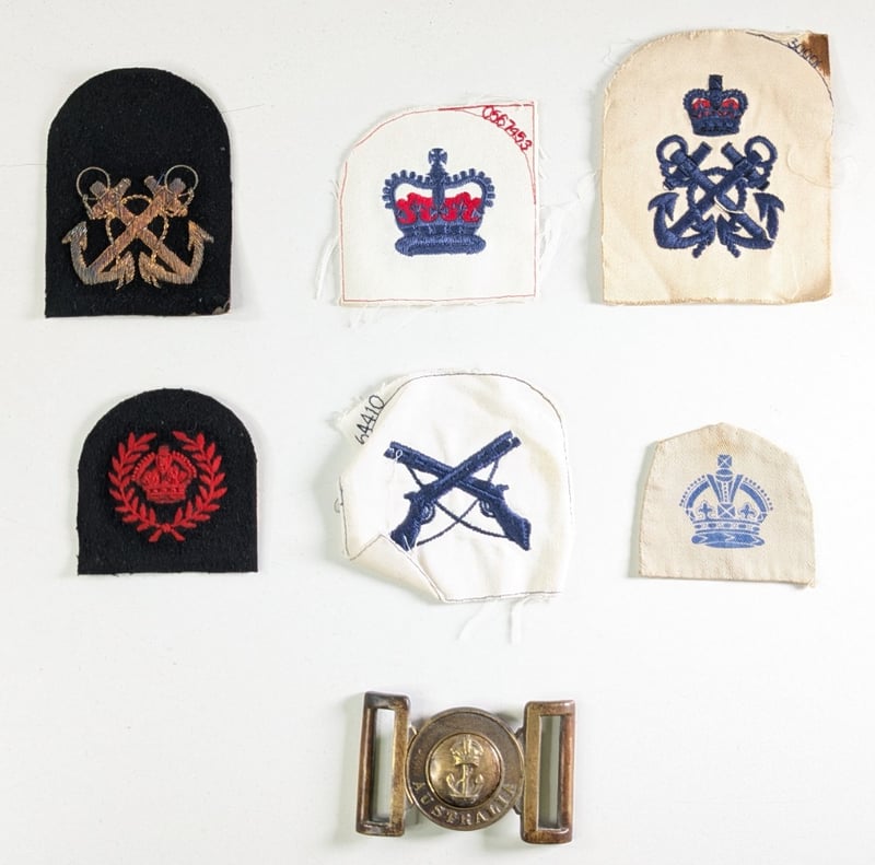 ROYAL AUSTRALIAN NAVY RANK PATCHES PLUS ROYAL AUSTRALIAN NAVY BRASS BELT BUCKLEItem Size: Height: 5cm, Width: 2.5cm, Depth: 1cm, Weight: 1KgCondition: Good - Refer To ImagesFC1B163013+230