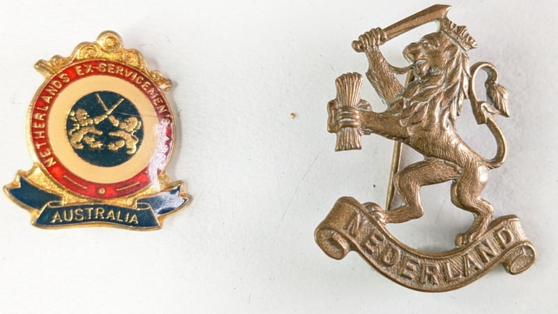 WW2 DUTCH NETHERLANDS BADGE AND AUSTRALIAN ASSOCIATIONBADGEItem Size: Height: 2.5cm, Width: 1cm, Depth: 1cm, Weight: 1KgCondition: Good - Refer To ImagesFÇ1B163013+236