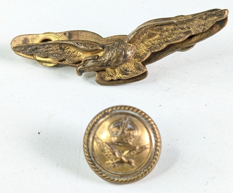 RARE WW1 ROYAL NAVAL AIR SERVICE CUFF EAGLE AND BUTTONItem Size: Height: 2.5cm, Width: 1cm, Depth: 1cm, Weight: 1KgCondition: Good - Refer To ImagesFC1B163013+240