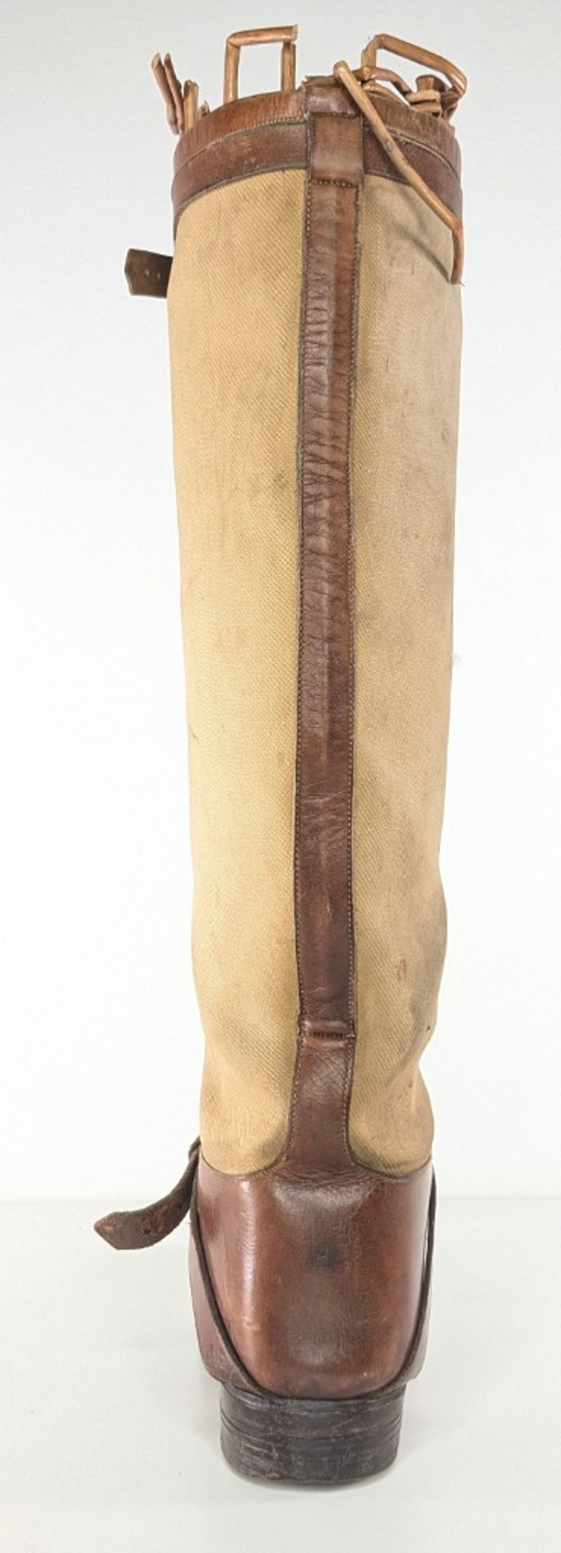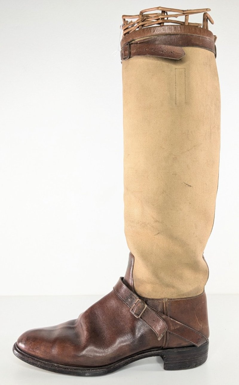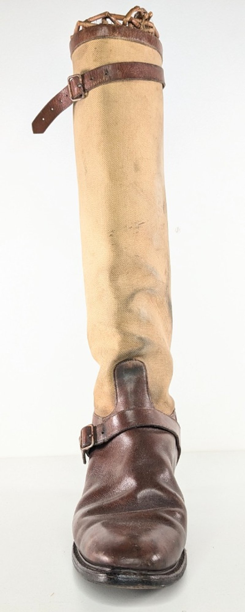 BRITISH BOER WAR / WWI CANVAS AND LEATHER OFFICERS FIELD BOOTS WITH RARE WICKER BOOT LASTS.Item Size: Height: 45cm, Width: 27cm, Depth: 15cm, Weight: 1KgCondition: Good - Refer To ImagesFC1B163013+3