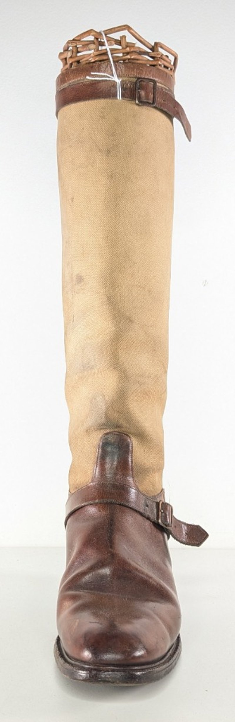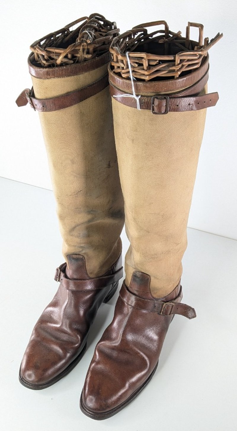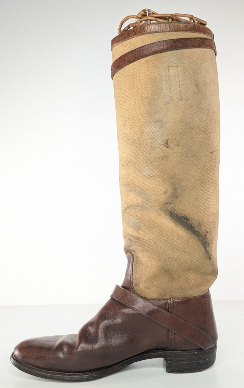 BRITISH BOER WAR / WWI CANVAS AND LEATHER OFFICERS FIELD BOOTS WITH RARE WICKER BOOT LASTS.Item Size: Height: 45cm, Width: 27cm, Depth: 15cm, Weight: 1KgCondition: Good - Refer To ImagesFC1B163013+3