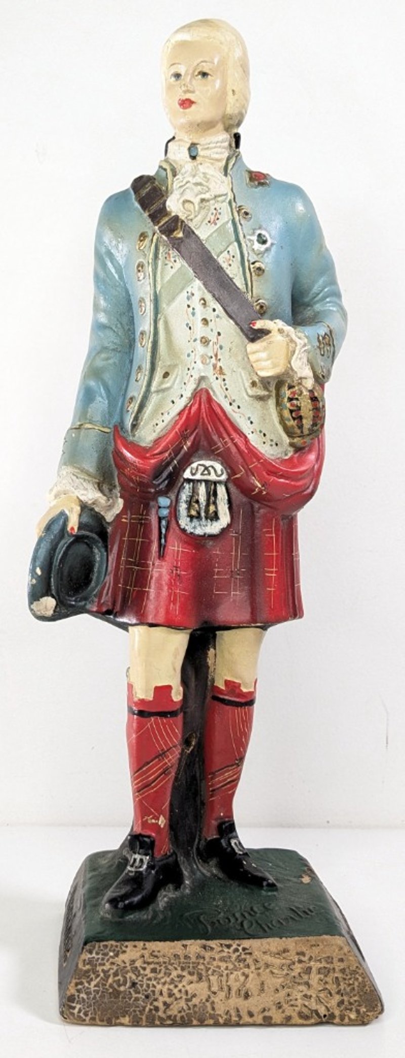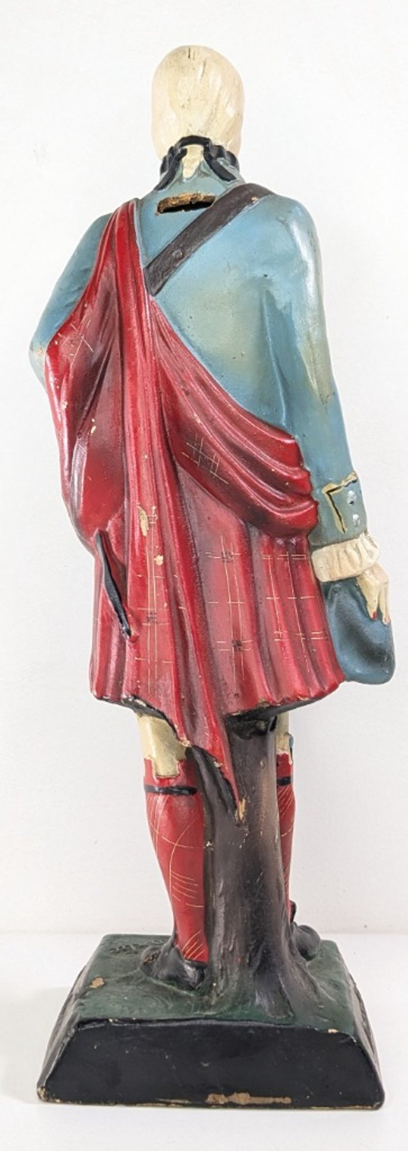 ANTIQUE DRAMBUIE PRINCE CHARLEY LATGE FIGURE RUBBER MATERIAL MONEY BOX RAREItem Size: Height: 40cm, Width: 15cm, Depth: 15cm, Weight: 1KgCondition: Good - Refer To ImagesFC1B163013+92