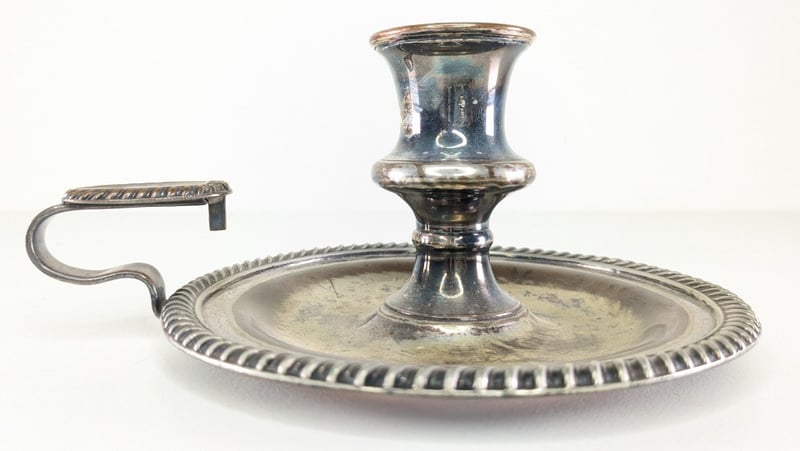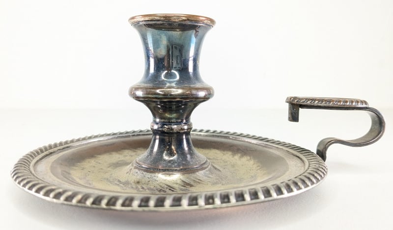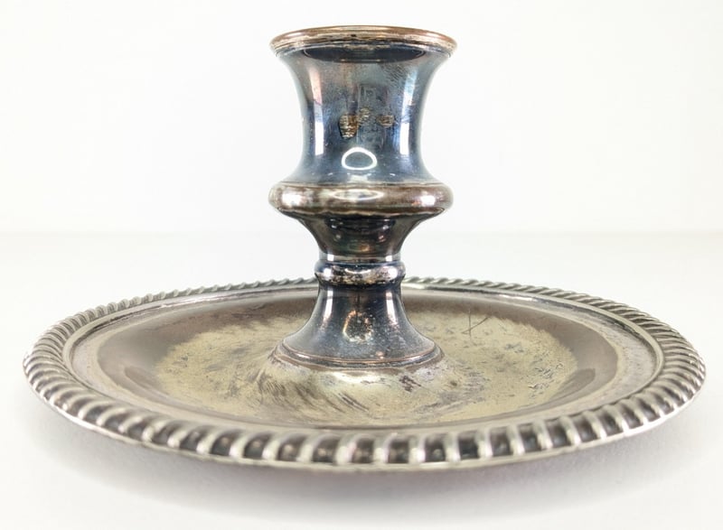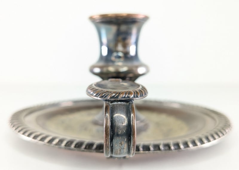 VICTORIAN SILVER PLATE CANDLE HOLDER, WITH SNUFFER.Item Size: Height: 17cm, Width: 17cm, Depth: 2cm, Weight: 0.5KgCondition: Good - Refer To ImagesFC1B163013+38