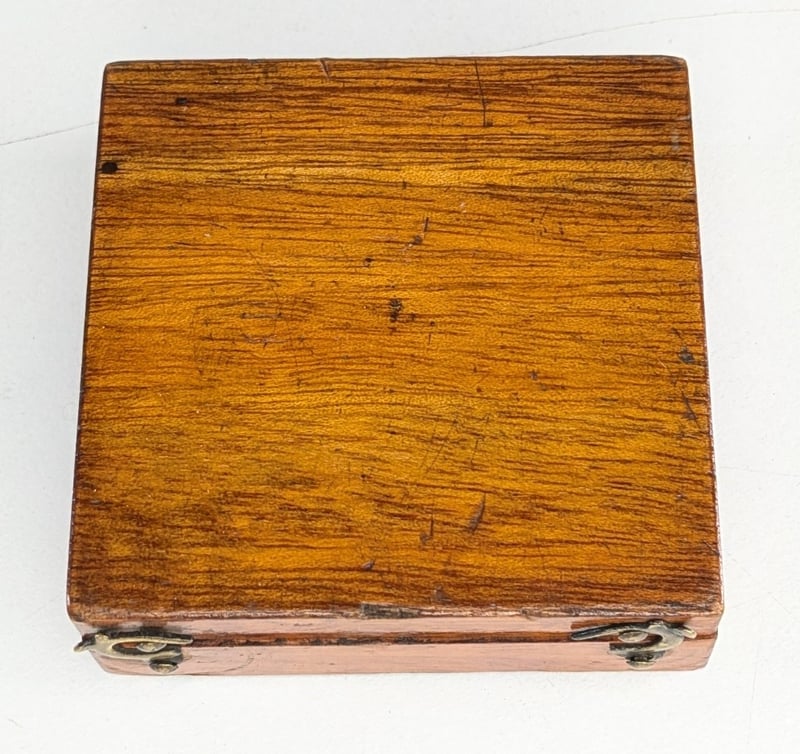 ANTIQUE SMALL POCKET COMPASS IN WOODEN CASEItem Size: Height: 7cm, Width: 7cm, Depth: 2cm, Weight: 1KgCondition: Good - Refer To ImagesFC1B163013+79