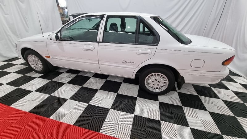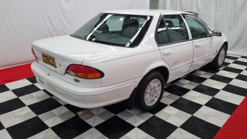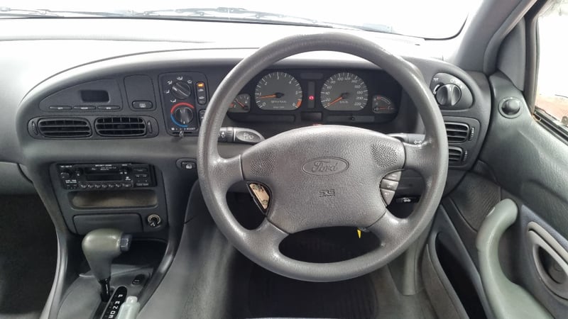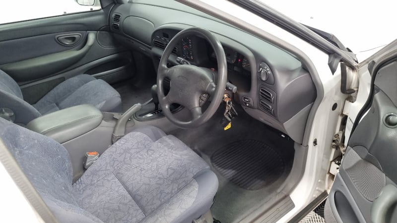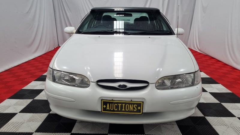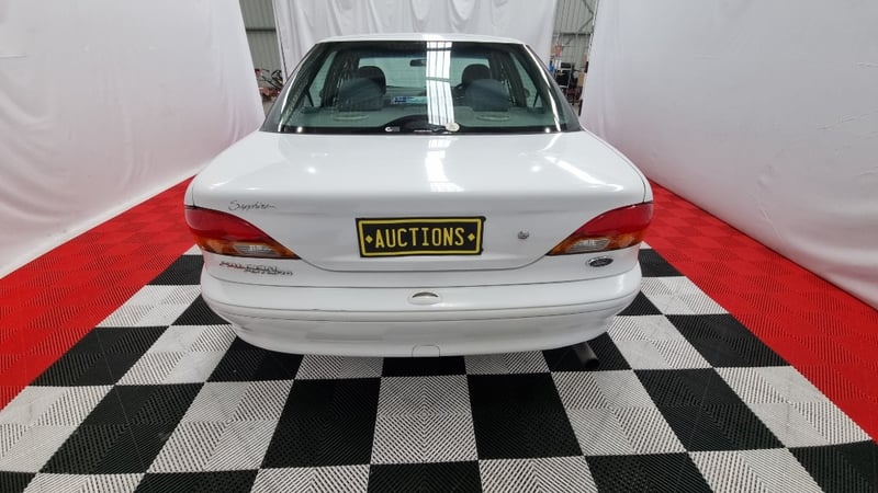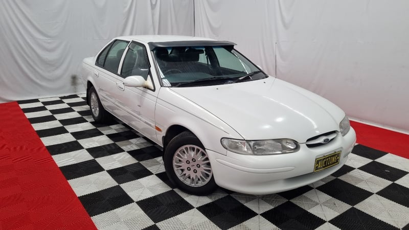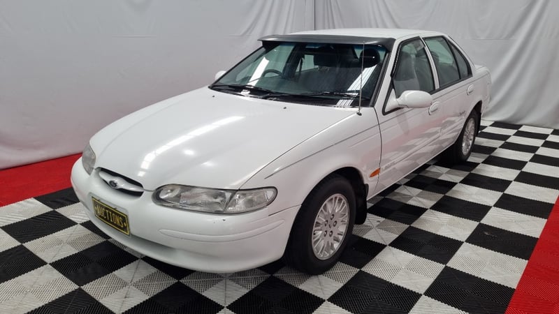 A well-presented example of Ford Australia’s late-1990s family sedan, finished in White with an indicated 131,496 kilometres — low for its age and retaining a largely standard presentation.
