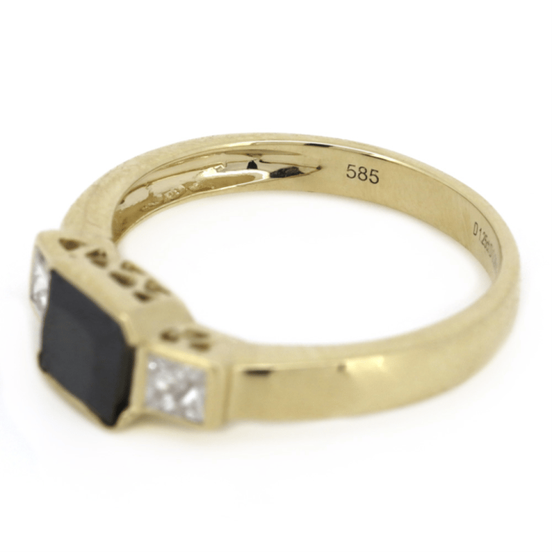 The Centre Features, One Princess Cut, Black, Diamond (1.25Ct, Opaque), Bezel Set. Flanked By, 2 Princess Cut, Diamonds (0.26Ct Tdw, H-I Colour, Si-I1 Clarity), Bezel Set. Ring Size N.