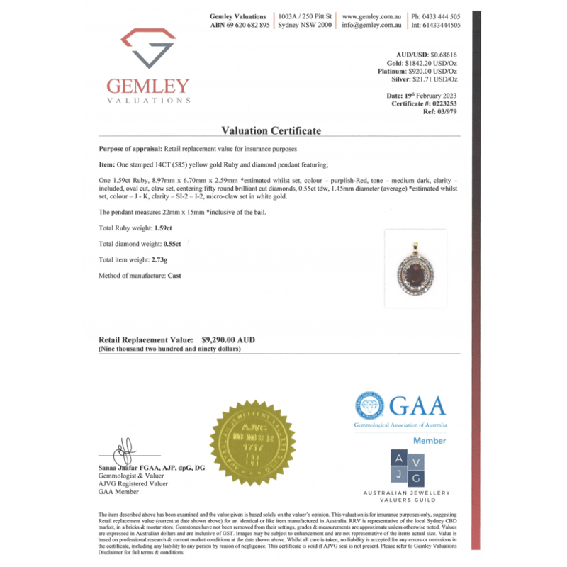 The Centre Features, Oval Cut, Medium Dark Purplish-Red, Ruby (1.59Ct, Included), Claw Set. Surrounding The Centre In A Double Halo Are, 50 Round Brilliant Cut, Diamonds (0.55Ct Tdw, J-K Colour, Si2-I2 Clarity), Micro-Claw Set In White Gold.