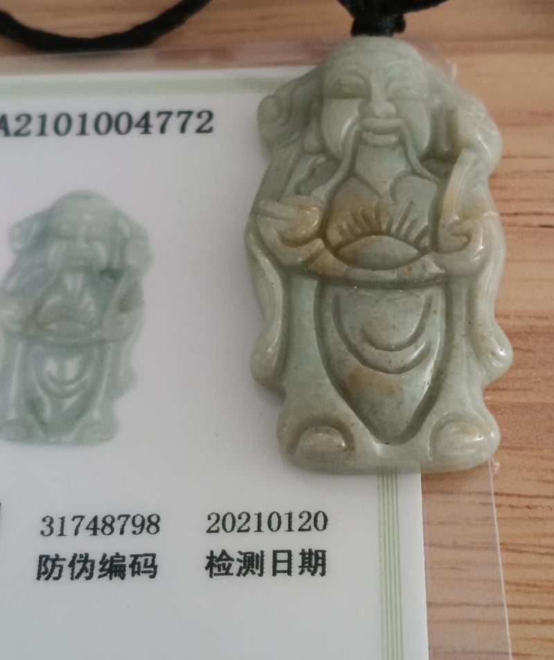 CERTIFIED CHINESE GREEN JADE BUDDHA PENDANT WITH BLACK CORD