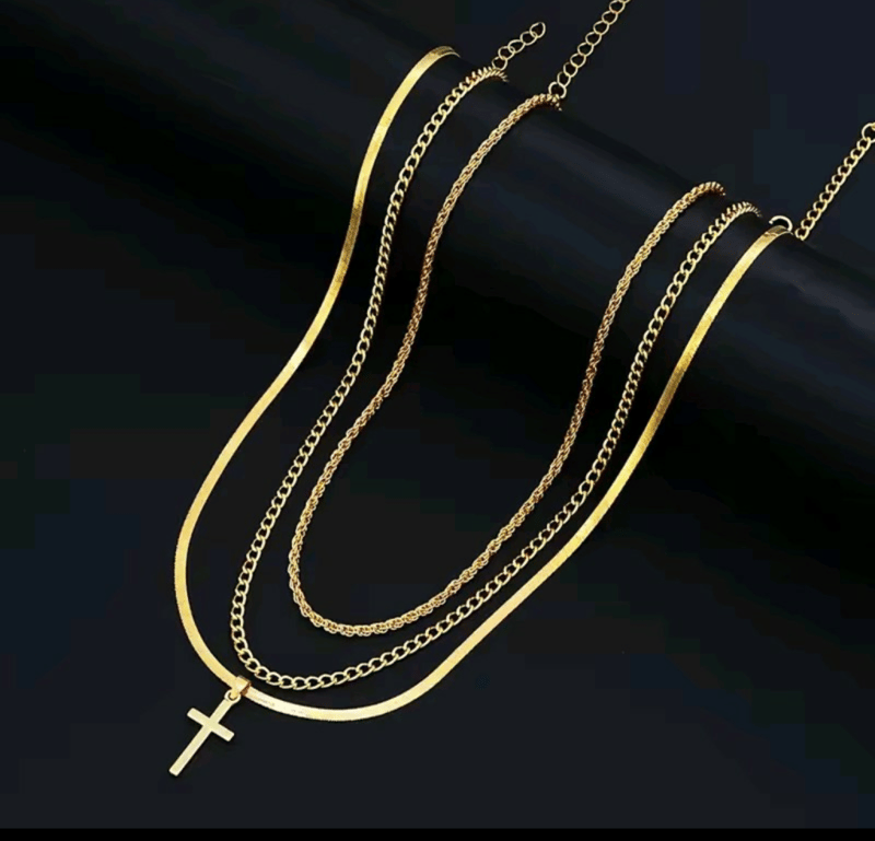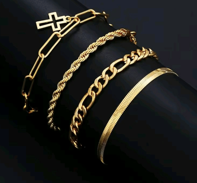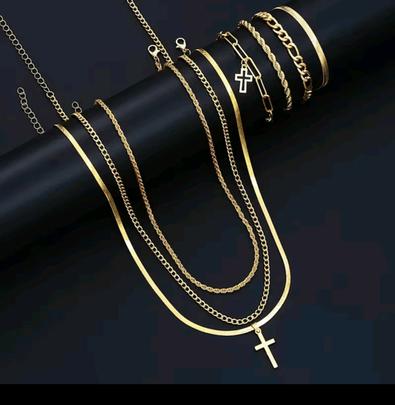 SEVEN PIECES OF GOLD STAINLESS STEEL UNISEX NECKLACE BRACELET SET