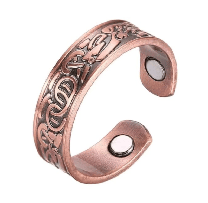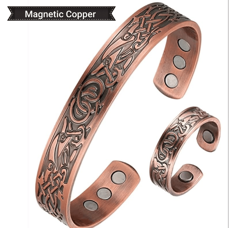ENGRAVED MAGNETIC COPPER ARTHRITIS BANGLE AND RING SET