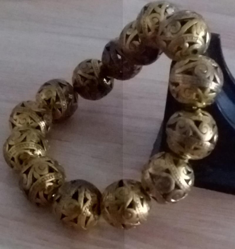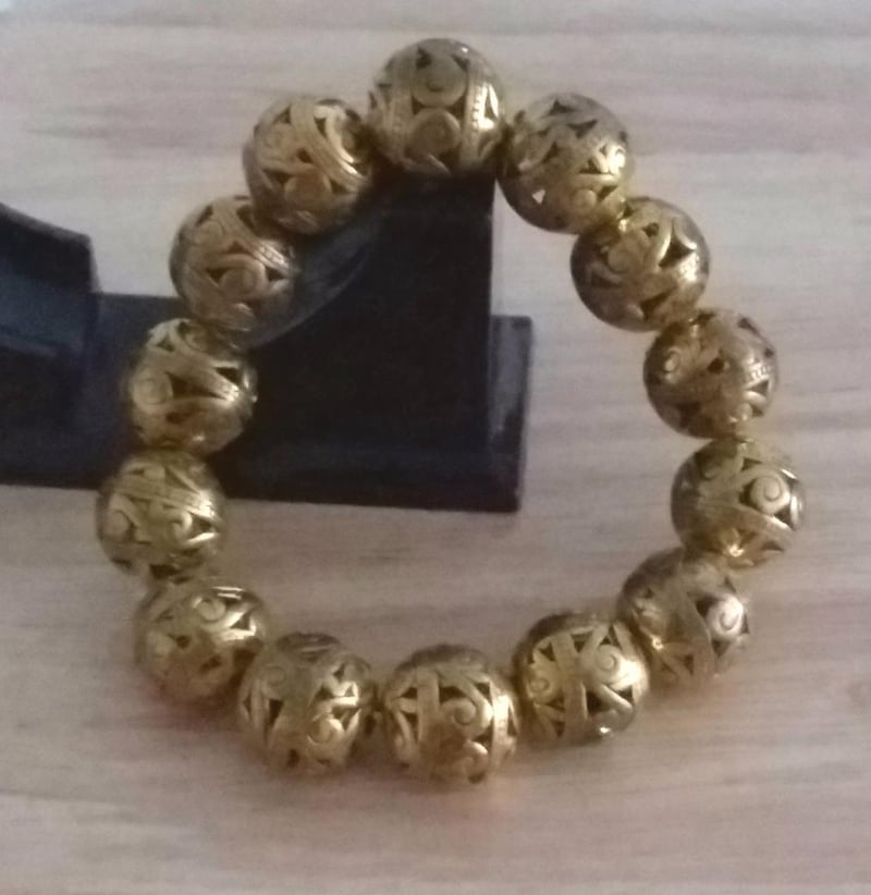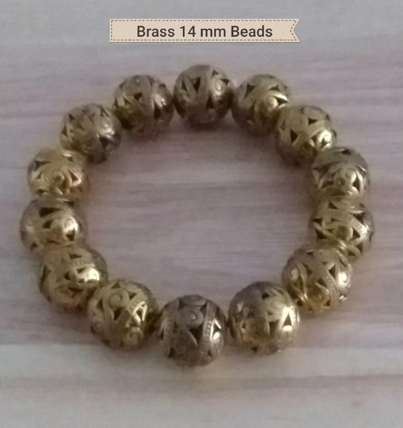 BRASS HOLLOWED UNISEX STRETCH BRACELET 14 MM BEADS