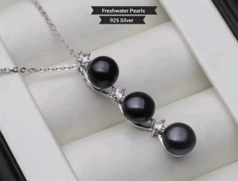 TAHITAN BLACK FRESHWATER PEARL NECKLACE WITH 925 SILVER AND ZIRCONIAS
