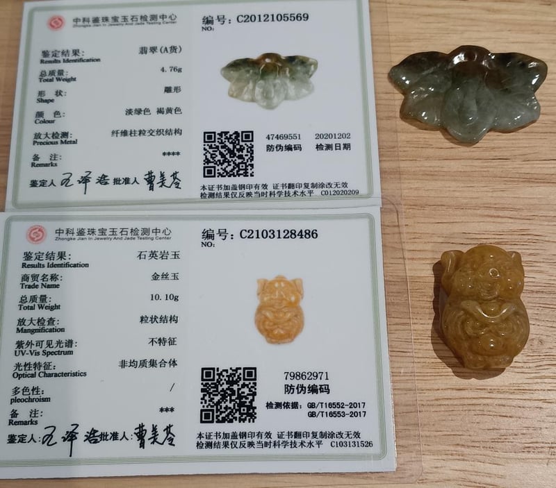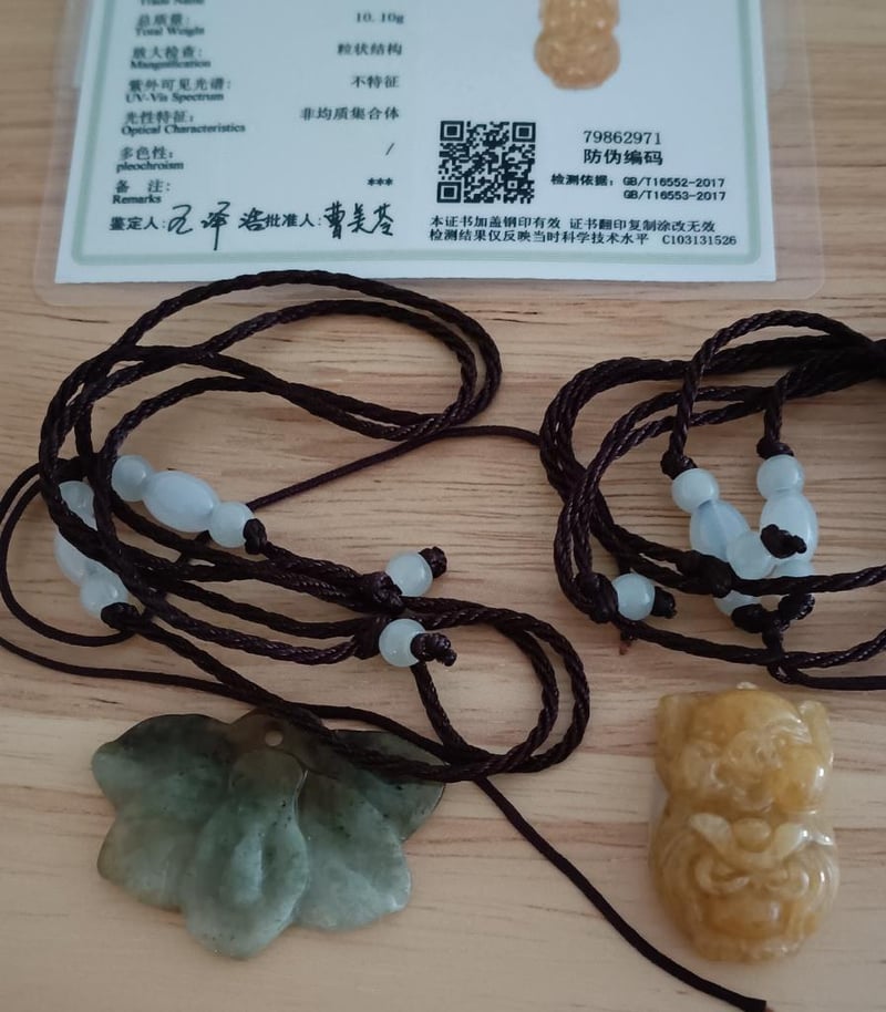 2 X CERTIFIED CHINESE JADE PENDANTS NECKLACES WITH CERTIFICATES