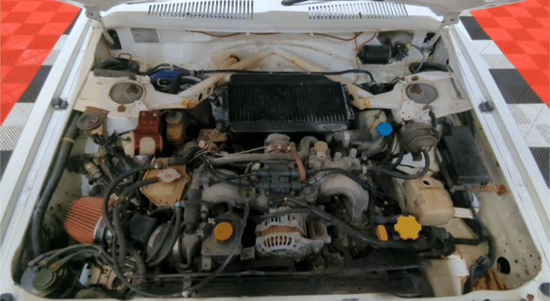 Vendor advises WRX engine conversion, recent mechanical servicing, light rust present, grille plastic loose and boost gauge operation unknown.