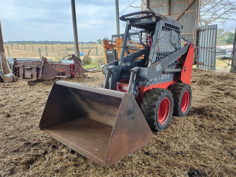 Thomas T105 Skid Steer with Bucket Price Guide - $10,000 to $22,000 (Based on standard condition unmodified, excluding attachments and/or additions) Make: Thomas Model: B009/95-105-115 Body: Wheel Loader Odometer: 3,796 hours Engine: Diesel Color: Red Description/extras: Start and Run - Refer to Video Isolater Front Wind Screen Cracked VIN: LC001456 Location: Pakenham South VIC 3981 - Not at Lloyds Branch Collection / Inspection by appointment only For more information Contact King Cheung on 0477 987 576 or [email protected]