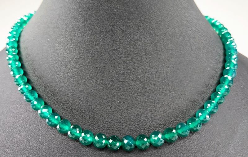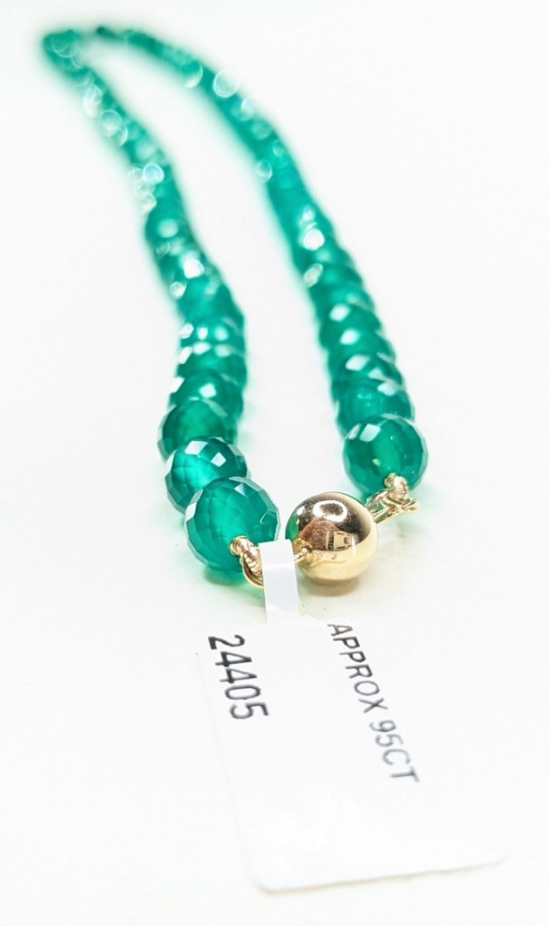 9CT YELLOW GOLD GREEN ONYX 6MM STRAND.