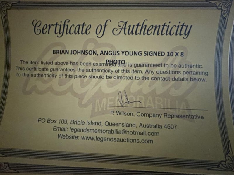 ACDC'S ANGUS YOUNG & BRIAN JOHNSON SIGNED/FRAMED