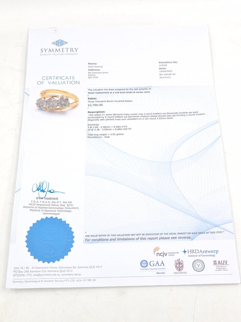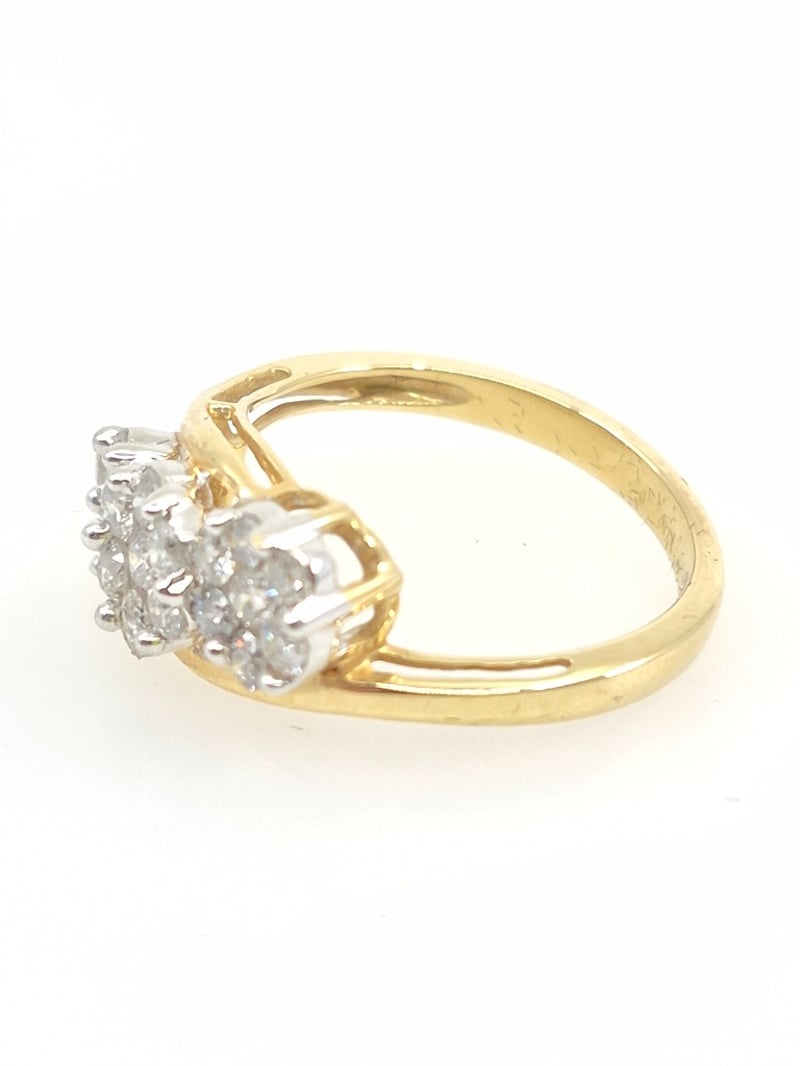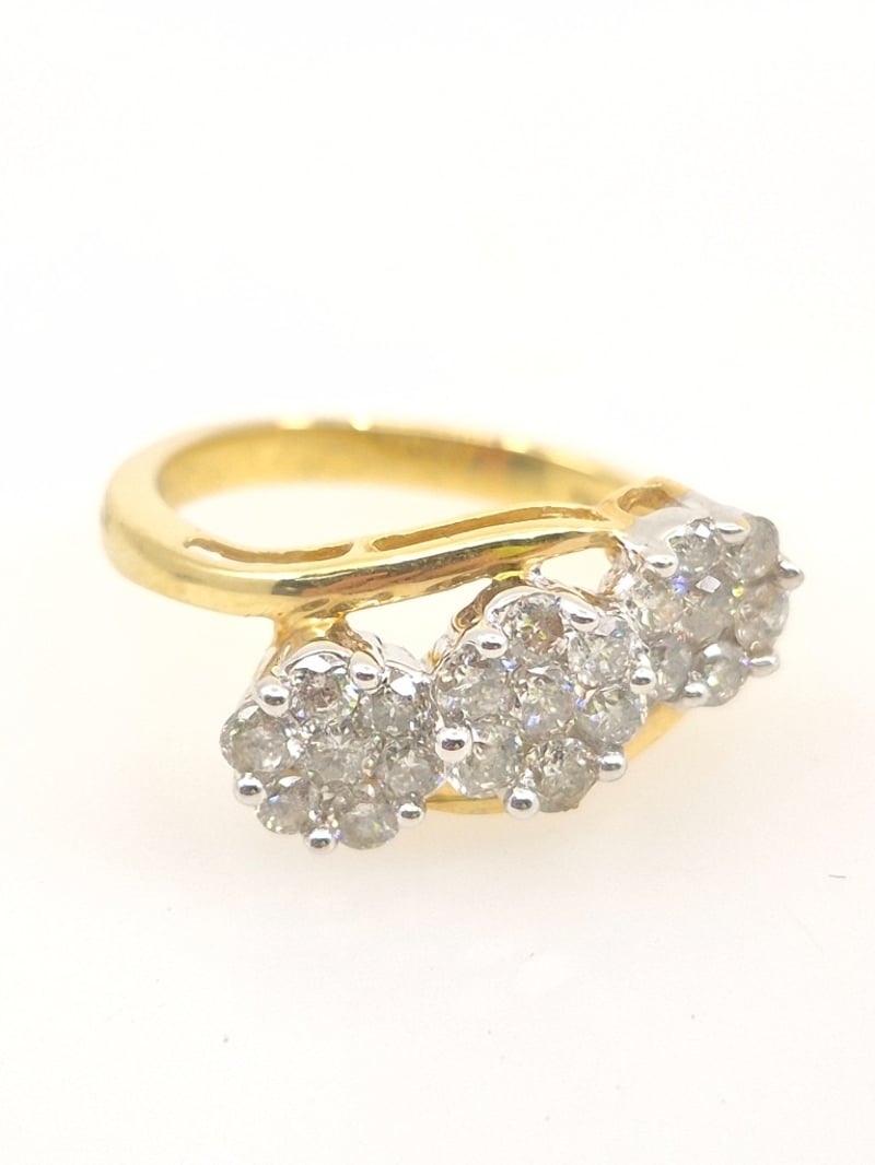 14K YELLOW GOLD & DIAMOND TRIPLE CLUSTER RING