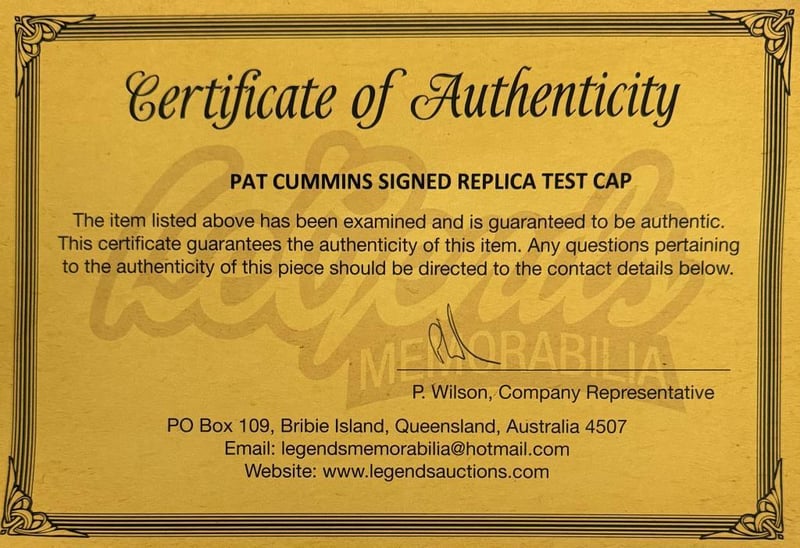 An Australian Replica Test Cap Personally Signed By Pat Cummins. Pat Cummins Is An Australian International Cricketer Who Plays For The Australian Men'S Cricket Team In All Three Formats. The Item Is Accompanied By A Certificate Of Authenticity.