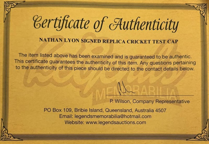 NATHAN LYON SIGNED AUSTRALIAN REPLICA TEST CAPAn Australian Replica Test Cap Personally Signed By Nathan Lyon. Nathan Lyon Is An Australian International Cricketer. Lyon Made His Test Debut In 2011 And Plays Domestic Cricket For New South Wales. The Item Is Accompanied By A Certificate Of Authenticity.Condition: Good - Refer To Images584418+11