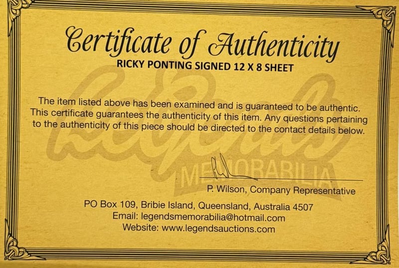 RICKY PONTING SIGNED SHEET IN PHOTO FRAME
