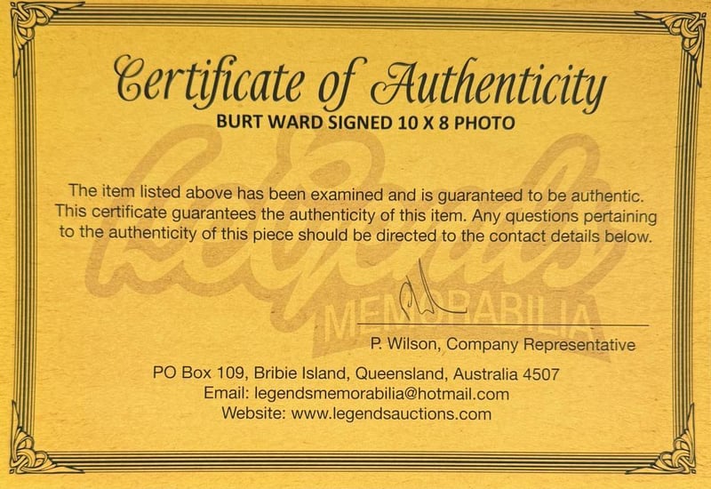 BURT WARD SIGNED BATMAN AND ROBIN PHOTO Burt Ward Personally Signed "Batman And Robin" 10 X 8 Photo. Burt Ward Is An American Actor, Animal Welfare Activist And Businessman. Ward Played Dick Grayson'S Robin In The Television Series Batman. The Item Is Accompanied By A Certificate Of Authenticity.Condition: Good - Refer To Images584418+39