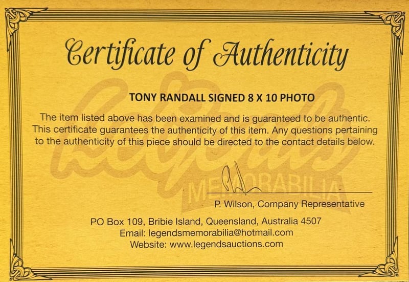 Tony Randall Personally Signed 8 X 10 Photo. Anthony Randall Was An American Actor, Comedian, Director, Producer And Singer. Randall Is Best Known For Portraying The Role Of Felix Unger In The 1970–1975 Television Adaptation Of The 1965 Play The Odd Couple By Neil Simon. The Item Is Accompanied By A Certificate Of Authenticity.