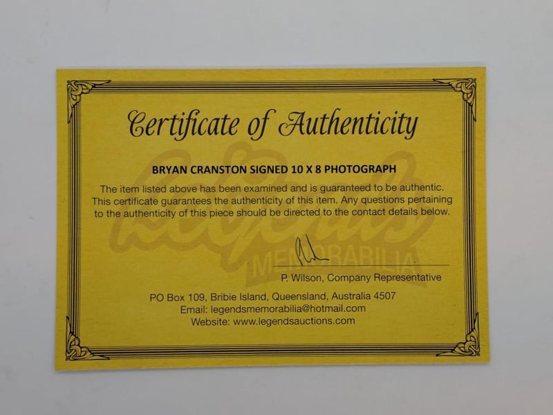 BRYAN CRANSTON SIGNED "BREAKING BAD" PHOTO Bryan Cranston Personally Signed "Breaking Bad" 10 X 8 Photo. Bryan Cranston Is An American Actor. After Taking Minor Roles In Television, Cranston Established Himself As A Leading Actor In Both Comedic And Dramatic Works On Stage And Screen. The Item Is Accompanied By A Certificate Of Authenticity. Condition: Good - Refer To Images 584418+50