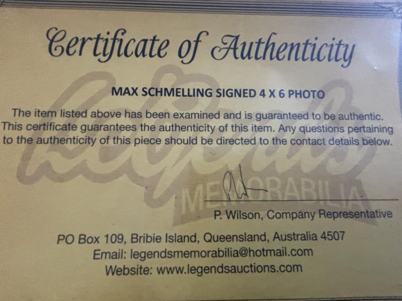 World Heavyweight Boxing Champion Max Schmelling (D 2005) Personally Signed 4 X 6 Photocard. The Item Is Accompanied By A Certificate Of Authenticity.