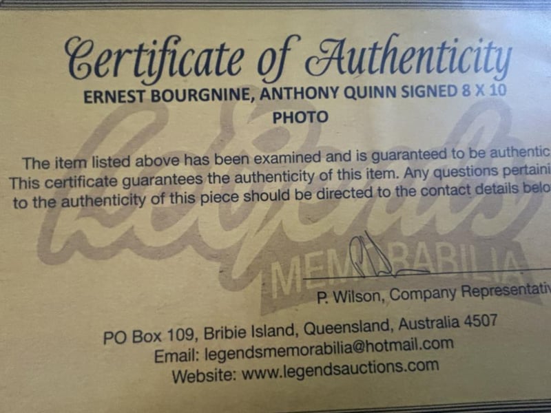 ERNEST BOURGNINE, ANTHONY QUINN SIGNED PHOTO