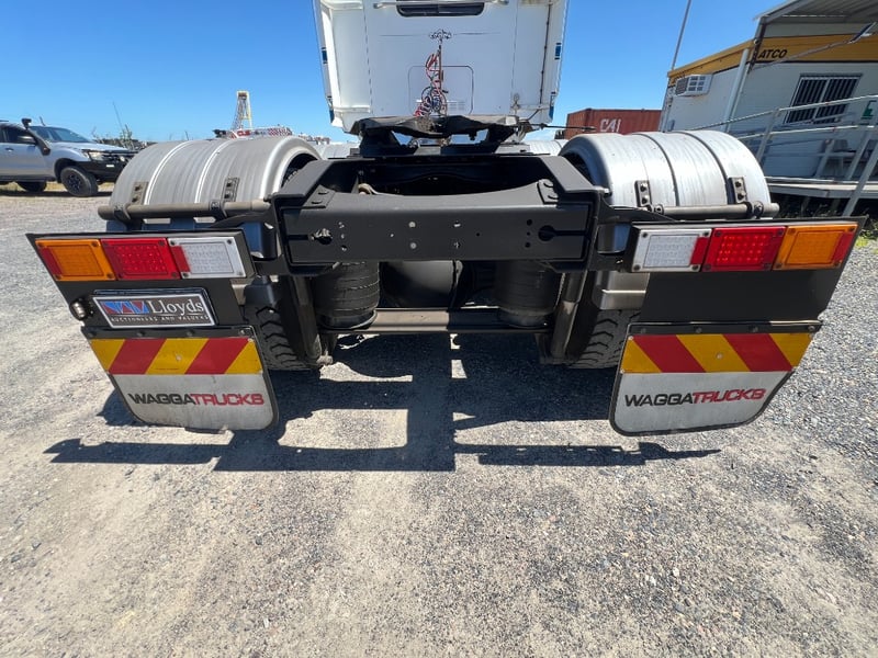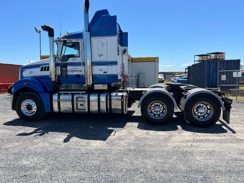 Description/Extras: 70T B-Double Rated, 535Hp, 36 " Sleeper, Near New Tyres, Polished alloy bull bar, Twin chrome exhaust stacks, Dual external air intakes, Sun visor and roof-mounted clearance lights, LED Light-Bar, Aerodynamic roof deflector, Alloy fuel tanks, Alloy rims, Air suspension, Heavy duty turntable
