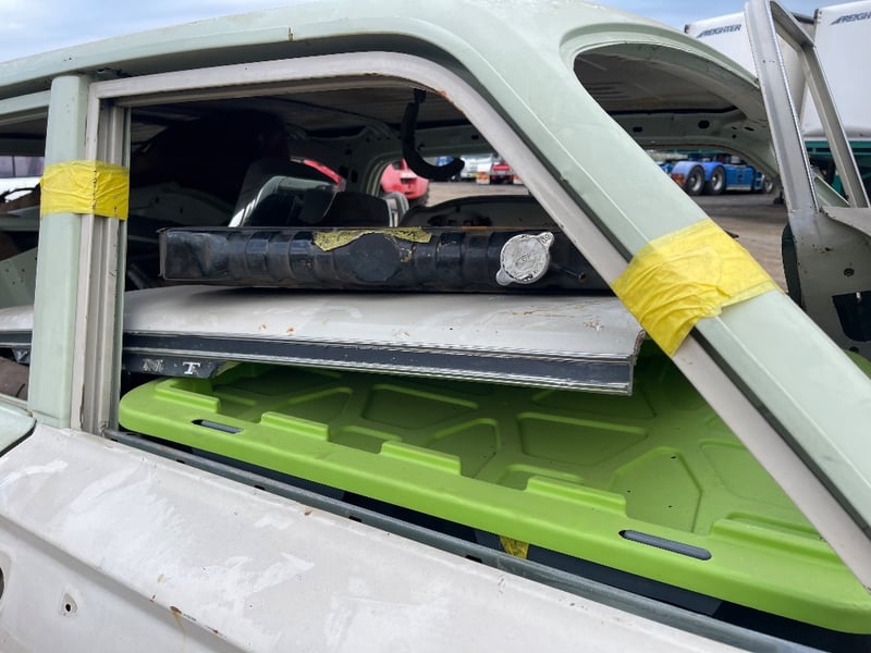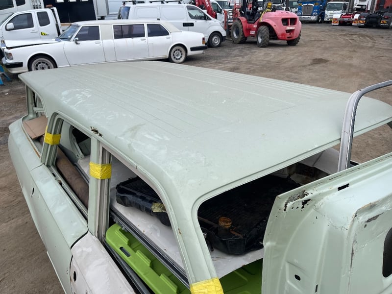Circa 1960s Chrysler Valiant VC wagon finished in Green. Offered as a project vehicle and reported as a non‑runner. The engine is supplied separately on a pallet. (slant 6 engine with parts in car also)